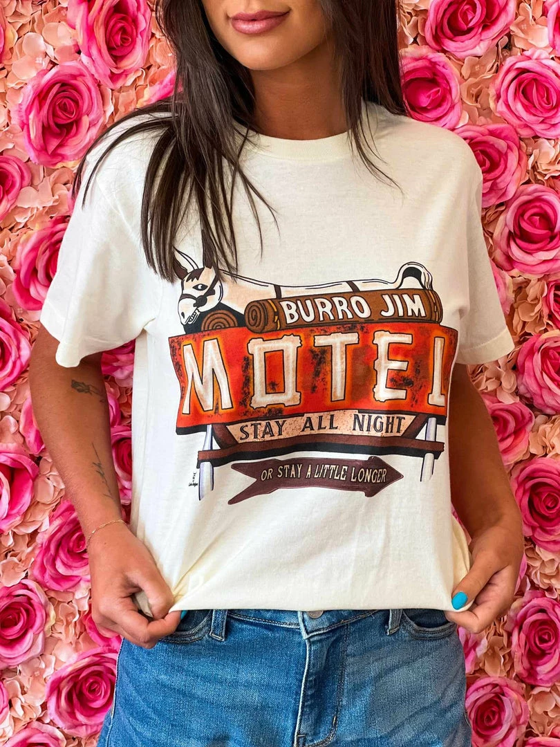 Burro Jim Motel. Stay All Night Or Stay A Little LongerΒ Tee. Unisex fit. Custom-made just for you!