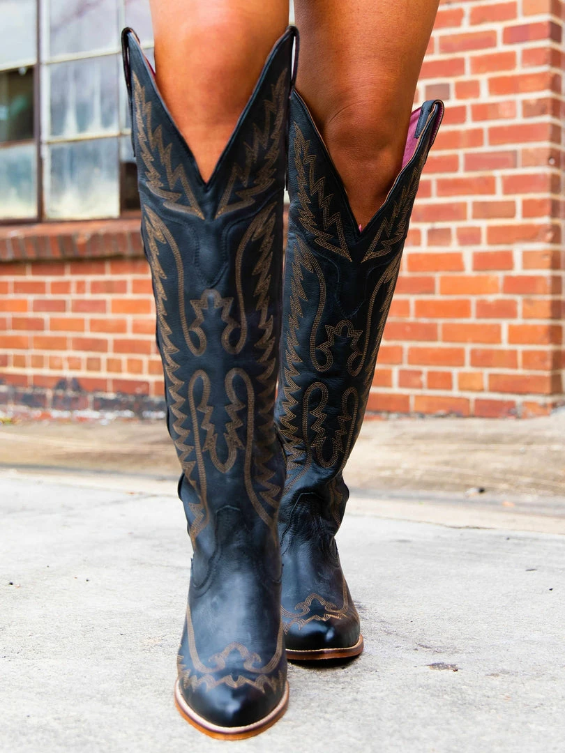 The Black Night Boots are genuine leather knee high western boots with custom stitching. Sneak a peek at the signature hot pink soles — Louboutin boots ain’t got nothin’ on a country girl! Southern Fried Boot Co. is here to stay!