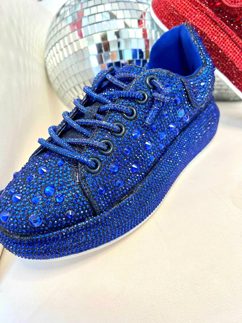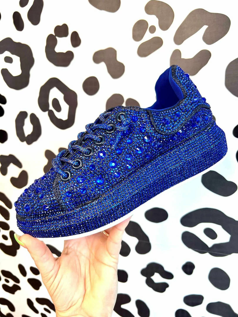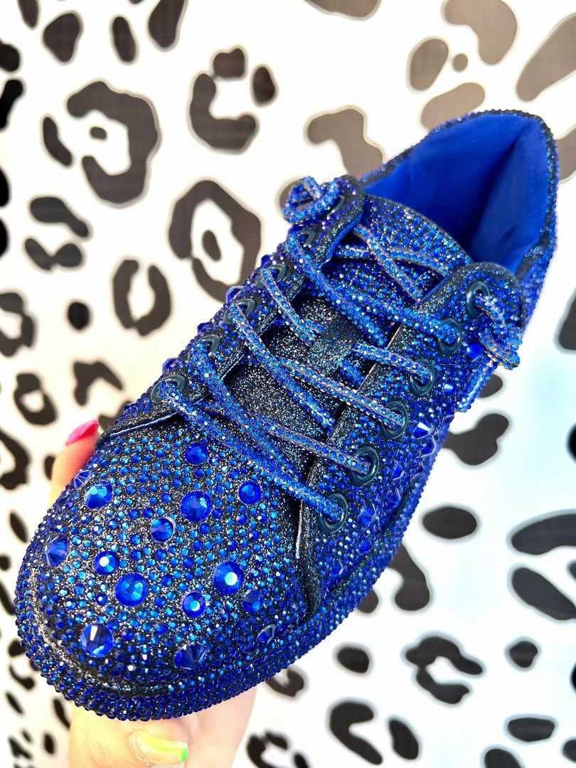 The Azela WangΒ “GlitteryΒ Midnight Chic” Flat Sneaker inΒ Blue is a total show stopper! These glitter sneakers are perfect for adding some pizzaz to casual outfits! Complete with a rounded toe and low cut collar. Perfect Fourth of July accessory for the patriotic chic!