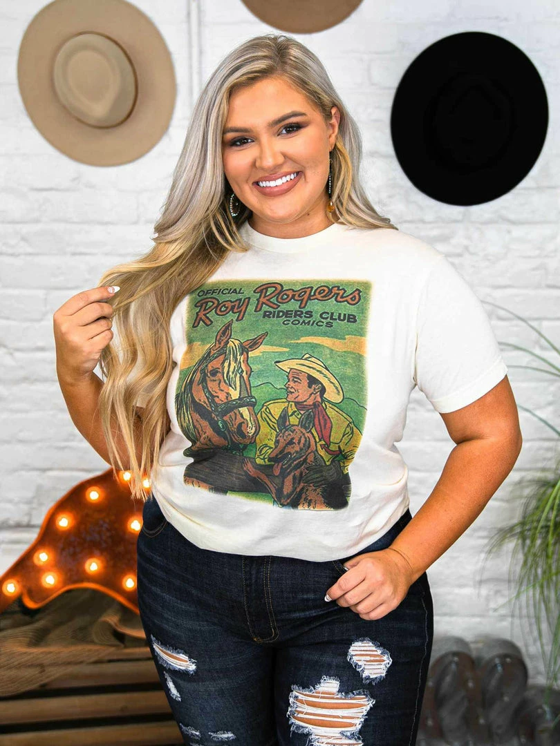 Calling all theย Western Chics! We are loving the look of this comic book tee!ย Perfectly paired with your denim jacket! Bling option available. Printed on aย vintageย natural tee.