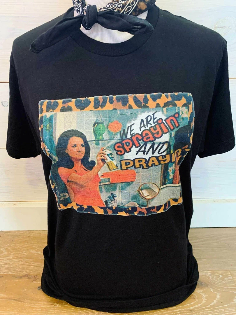 This tee is GOLD! I’m sure we aren’t the only ones Sprayin’ & Prayin’ during this time! True to size, unisex tee. Perfectly paired with leggings, jeans, and our leopard masks! Bling option available.