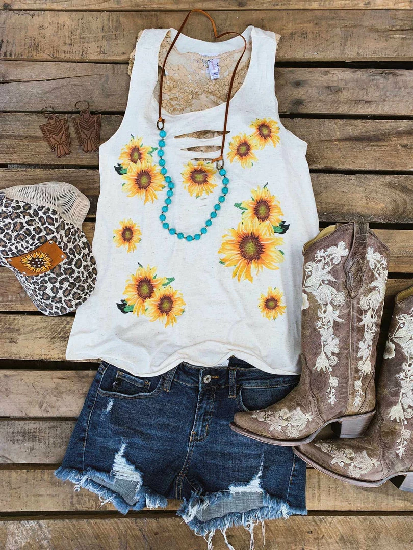 C’mon Golden Girls! This Sunflower Tank is PERFECT for layering – we are obsessed with the distressed detail and custom floral print. This tank is SO soft & custom made to order in the state of TEXAS! Available in sizes S-2XL and made by B&S Clothing Co. This tank is a relaxed fit, scoop neck & true to size.