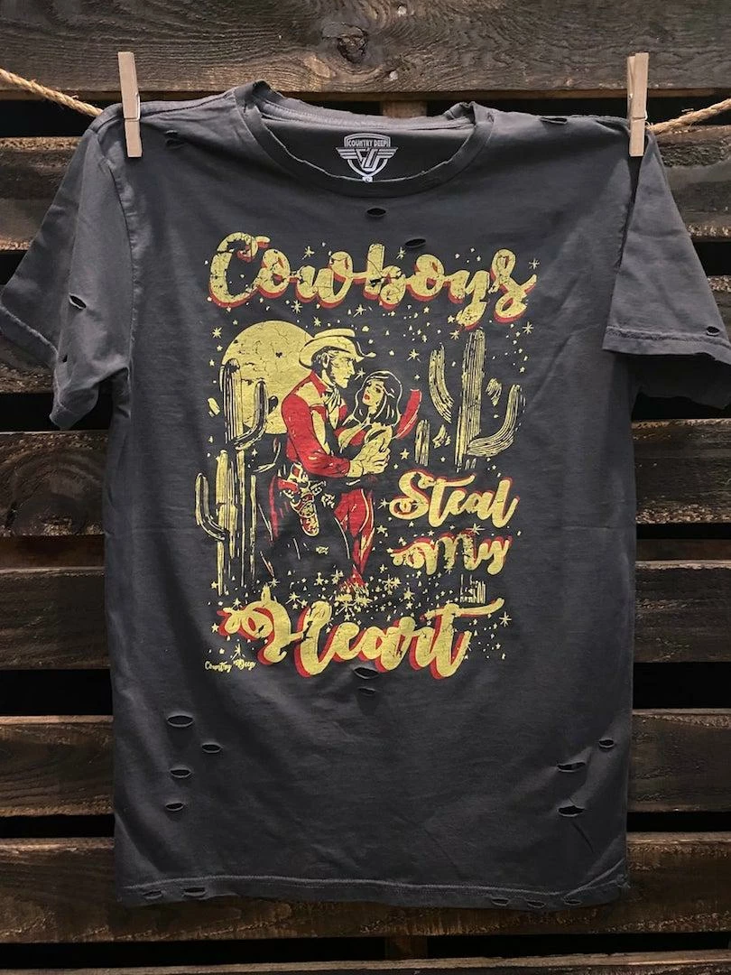 Cowboys Steal my HeartΒ vintage distressed 1980’s unisex T shirt available in faded black