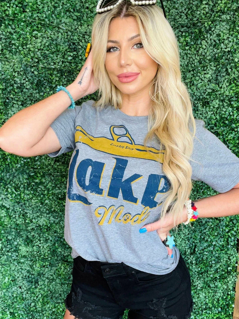Lake Mode Tย shirt. If you loveย having a party on the lakeย we have the tee for you! This vintage vibe is a must!ย Perfect with your favorite beer in hand andย your lake apparel.ย