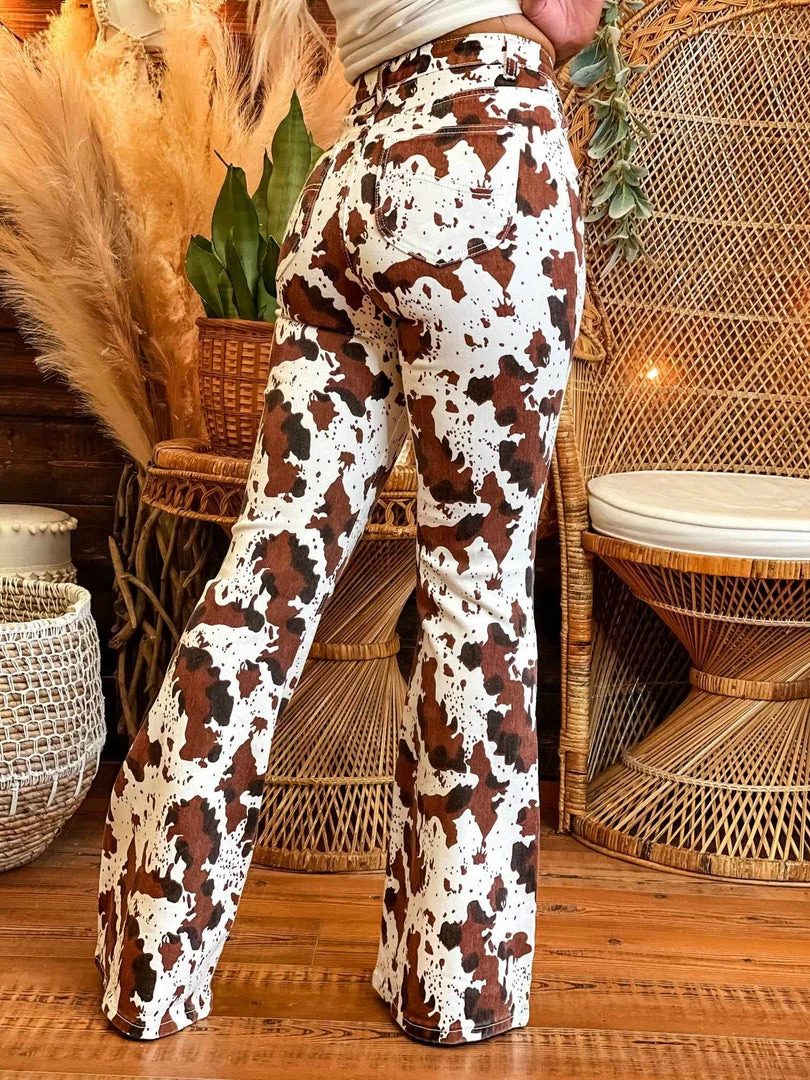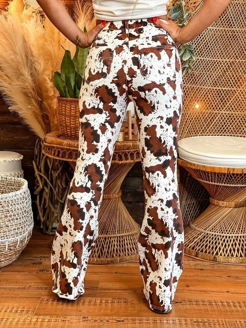 Make all of your moves in these amazing pants! Cow print is the hottest trend and we love it. It pairs perfectly with just about anything! Graphic tees keep it fun and our sequin bodysuits would keep it sassy! The possibilities are endless!ย