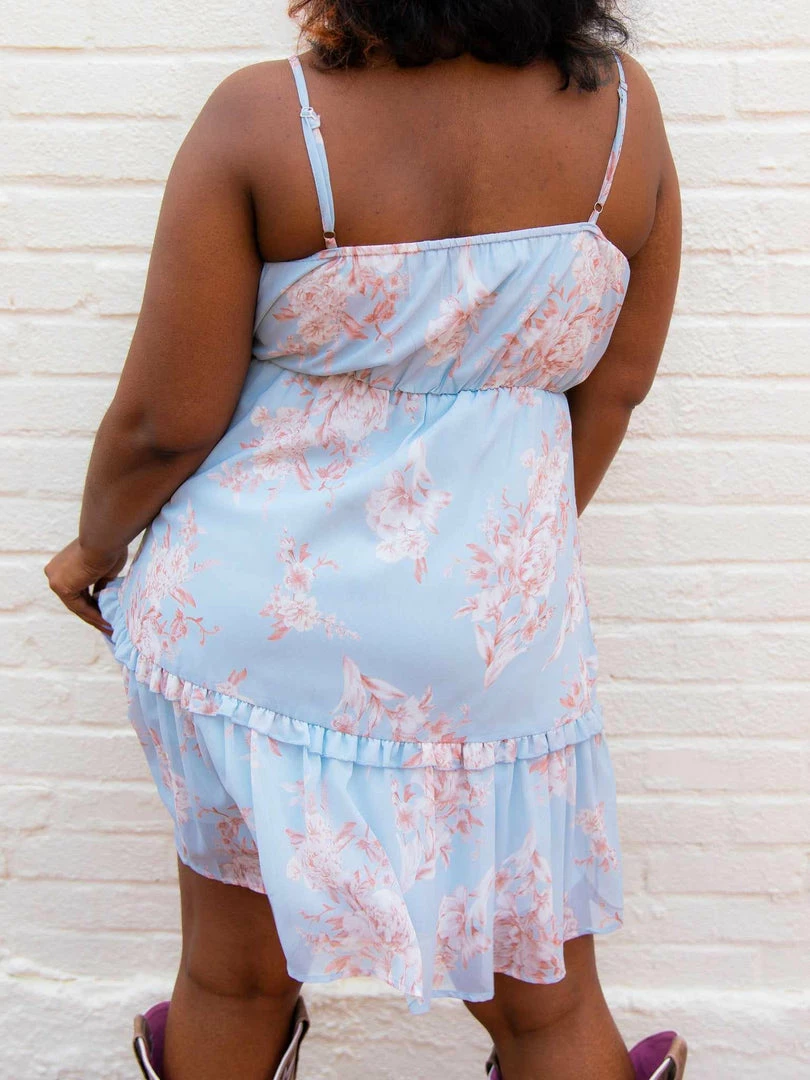Light, fresh and just a little flirty – this might just be the perfect summer dress! Light blue with delicate pink floral pattern, this dress can take you from running errands to dining alfresco! This dress is true to size and has adjustable straps for our taller gals! The dress is SO flowy and lined for coverage. Made by Southern Fried Chics & designed by our Owner Liz!