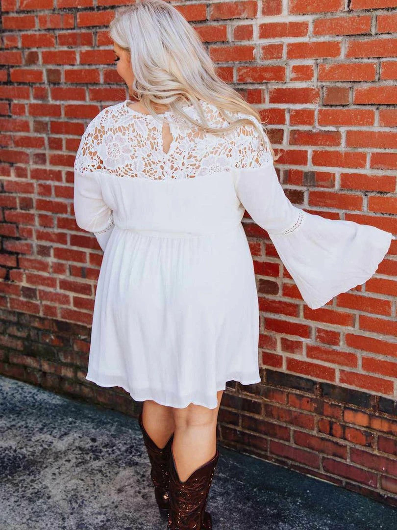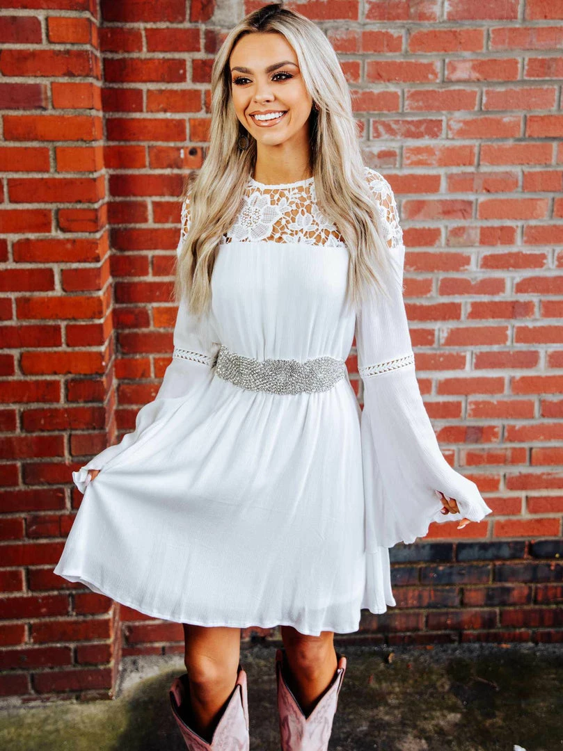 With long sleeves and beautiful lace applique, the Lily Grace dress is a must-have for spring and summer. Pair it with the Rhinestone Crowning Moment belt for an ultra-glam look.ย