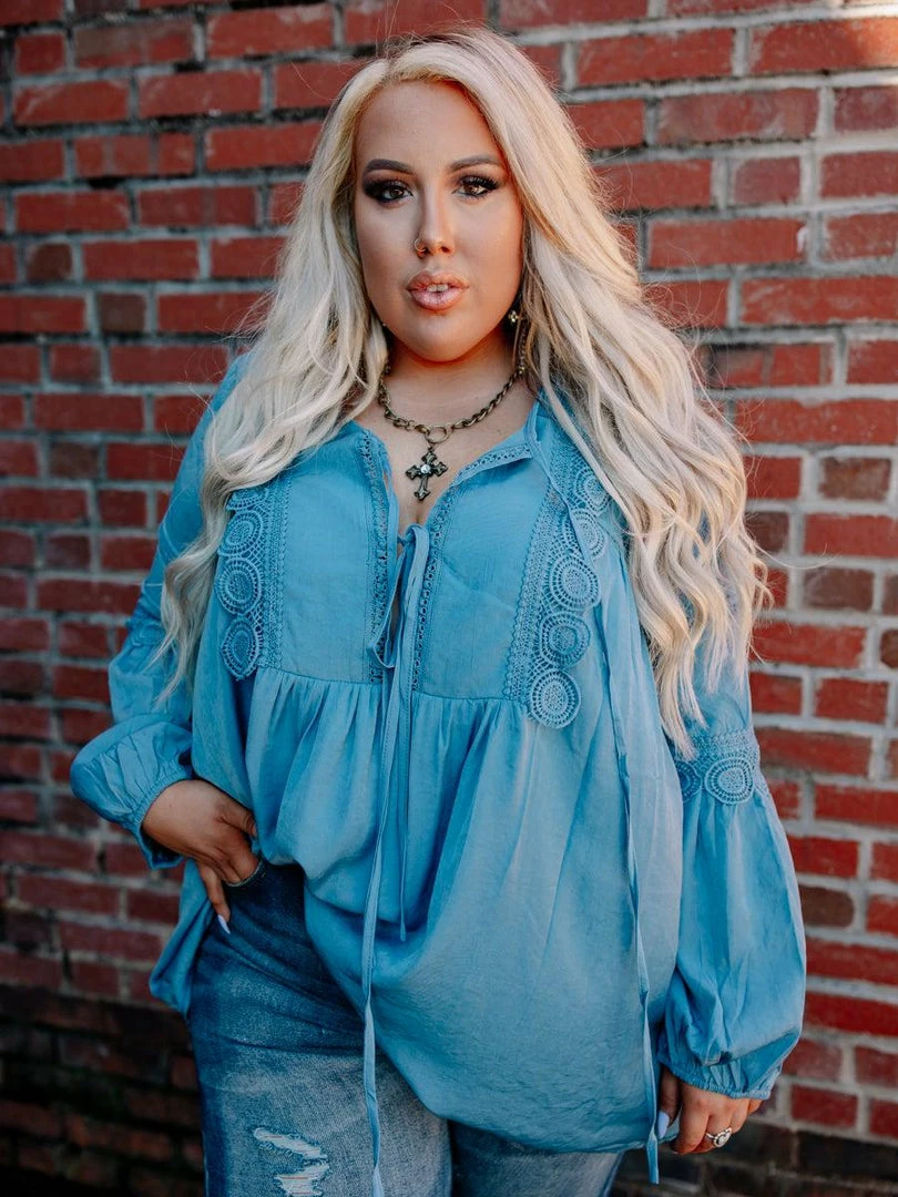 This is freshness personified! Wear the Royal Blue Circle Of Love Top, for that innocent and fresh look that looks sooo good to the eyes! This flowy and comfortable blouse is the perfect top for all season. It has the perfect coverage while letting you feel cool at the same time! Pair it with your favorite shorts for a clean and sleek look! Check out the crochet detailing that ties if you want more coverage and has elastic around the wrists.