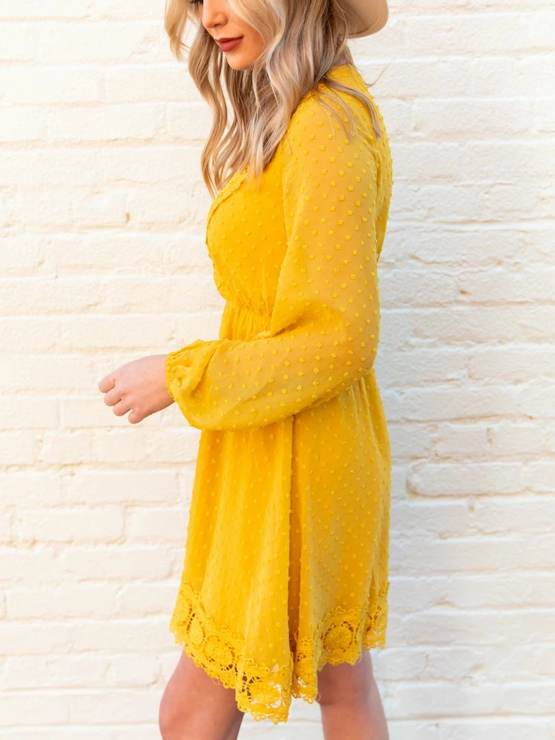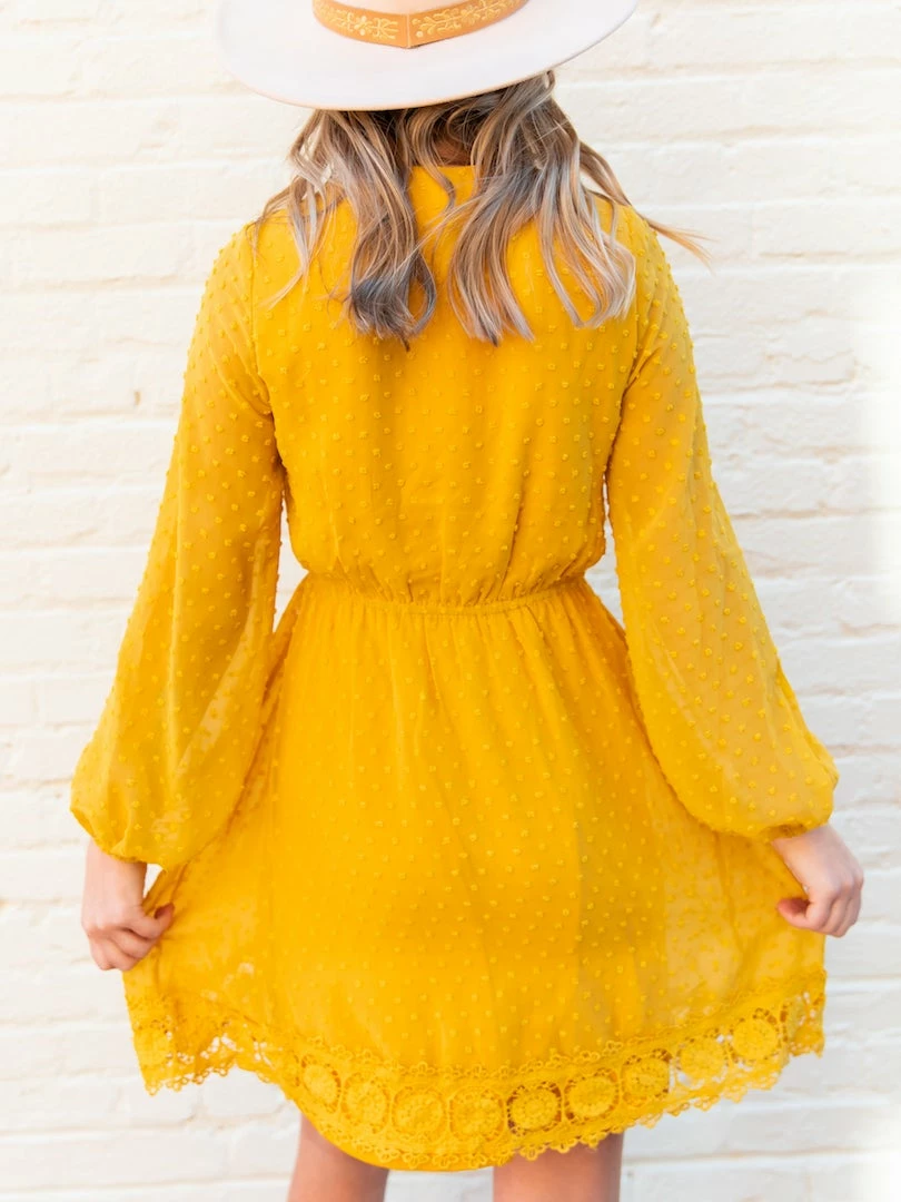 Be the life of the party with this bright This One’s For The Ladies Dress! This dress comes drenched in a vivid color of happy mustard. Effortlessly makes you stand out in a crowded room with its unique color and design. The embroidery details coupled with the see-through fabric creates an enviable silhouette around your body!