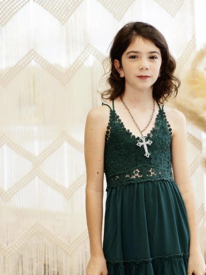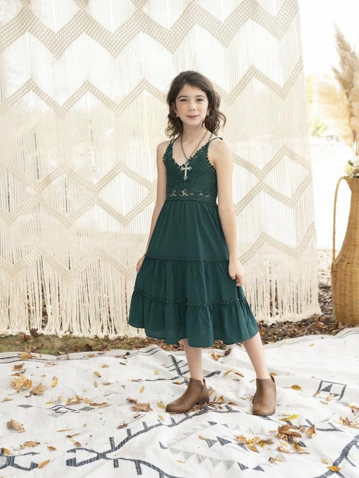 Long, flowy, and just a tad bit sassy! You are bound to fall in love with theย Girls Southbound Dress!ย This ’80s inspired tiered ruffled dress is made for twirling.ย Trust us…ย we couldn’t help ourselves either and neither will you.ย It features a scoop neckline, cross-back adjustable spaghetti straps, and beautifulย floral applique details. It’s the most ideal dress for so many occasions!