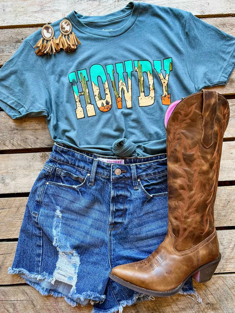 Howdy.Β Perfect for layering!Β Graphic tees are our go-to!