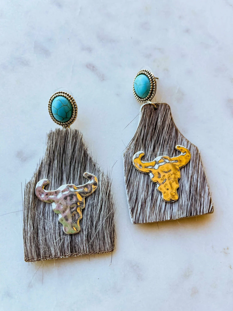These rustic western style earrings come in cowhide adding awesome texture! And we can’t forget to add a pop of turquoise! These cowskull earrings are too cute and will match all of your favorite outfits!Β