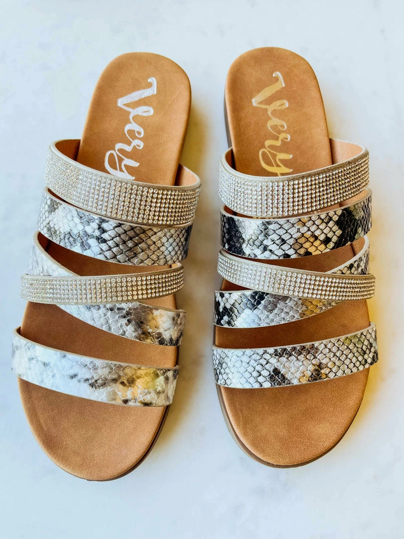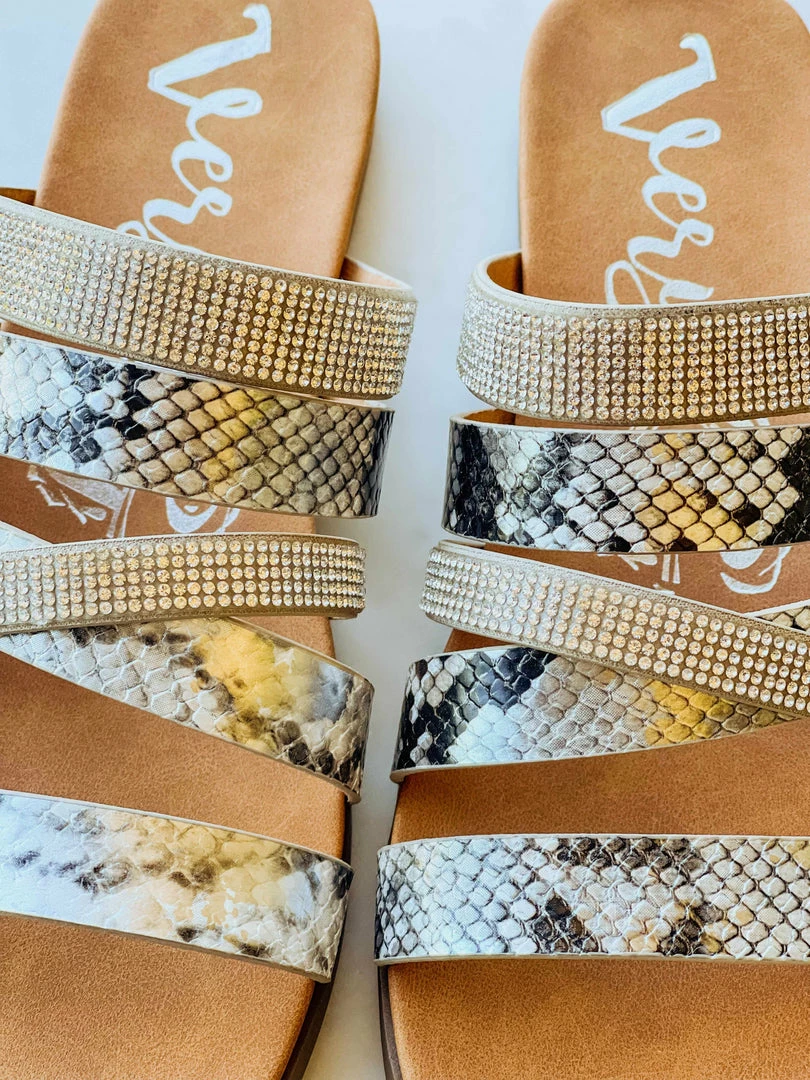These snake skin slide sandals are the perfect casual chic summer staple!Β Open-toe and open-back design keep you cool and breezy for an all day comfy fit.Β These sandals are so easy to slip into they’ll become your go-to shoe for all the lazy hazy days of summer!