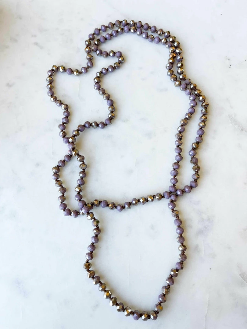 This beaded purple necklace is the perfect answer to the question “what is my cute date night outfit missing?” It looks great against denim, accessorizing a v-neck, or layered with other, complimentary necklaces! It’s definitely a must-have for any jewelry box. The beads on the beaded necklace are 8mm. It is 60″ long. Also available in other colors.